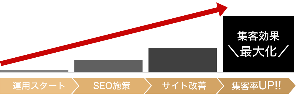 閲覧数やお客さまの反応によってウェブサイトを改修して、より集客率の高いサイトを作っていきます。
